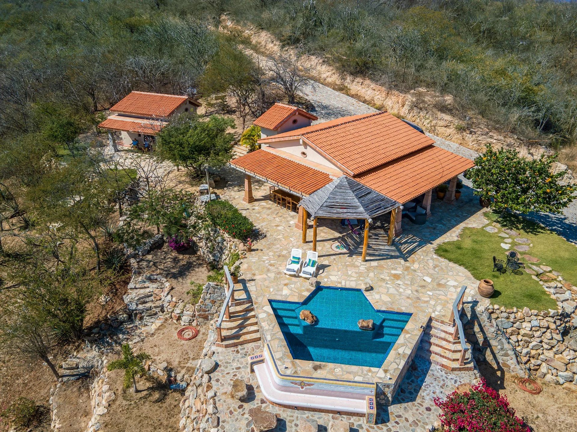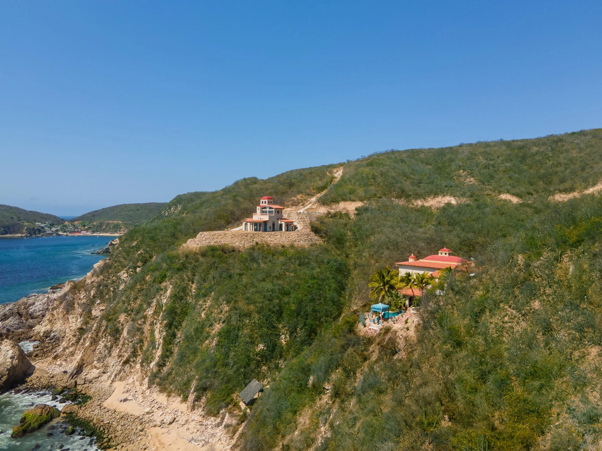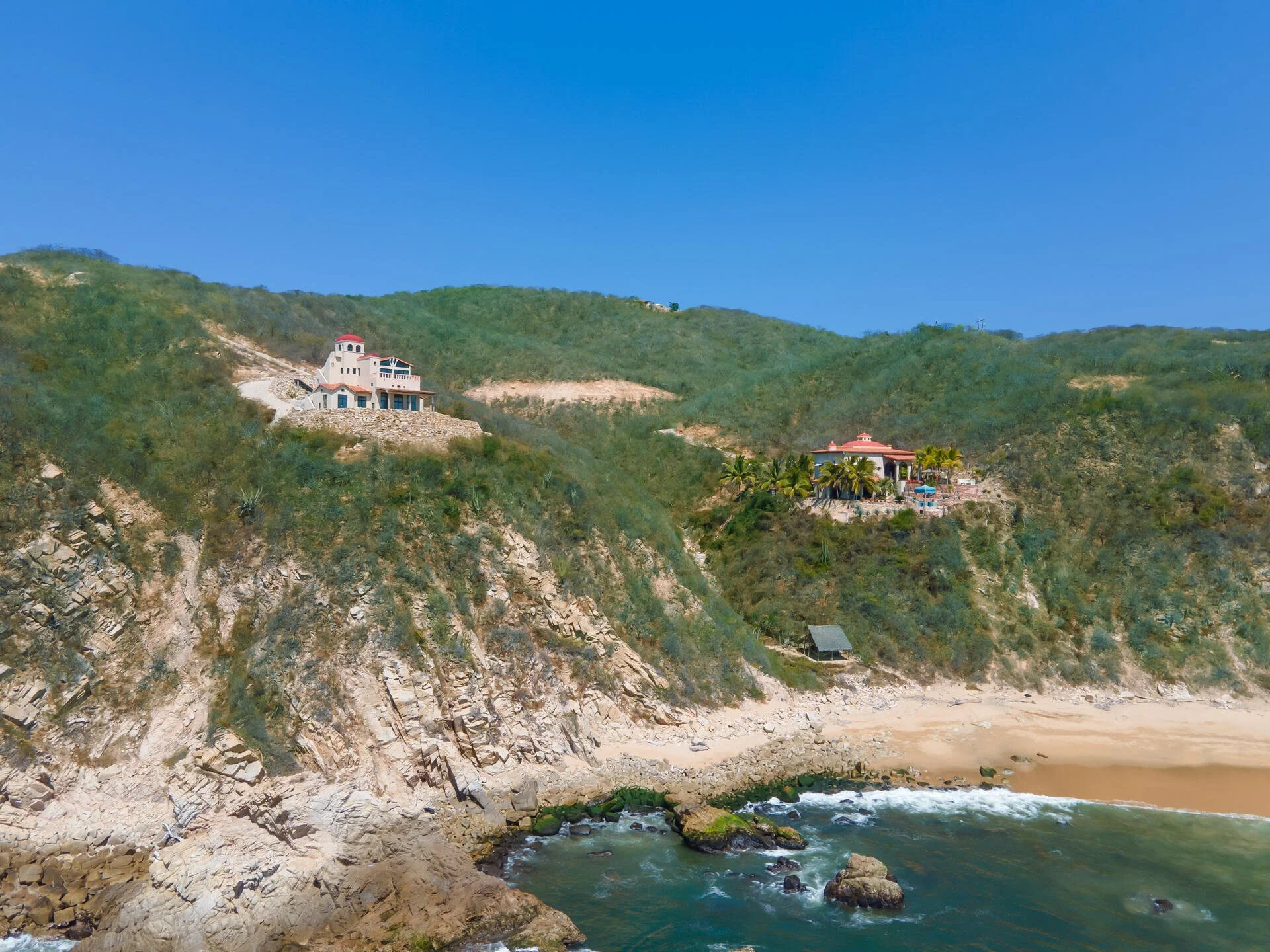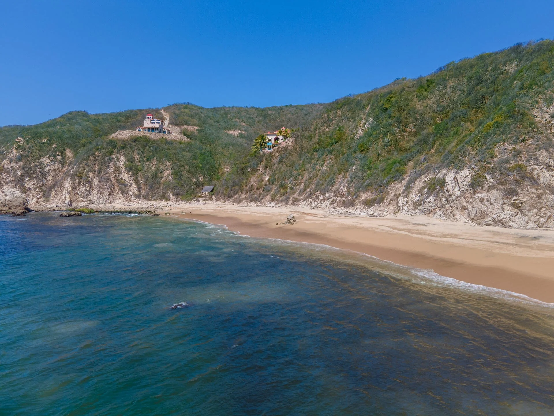 The perfect luxury home development location. Akunamatata features 1,400 feet of private beach due to the rock formations that butt up to the Pacific ocean. This amazing property includes one complete villa. The villa features 3 bedrooms, plus a giant open-air downstairs to sleep additional guests. There is an incomplete house that can be finished out to your liking. Further up on the property there are two separate apartments. The first is a one bedroom equipped with it's own kitchen, and a separate studio apartment. with 323,000 meters (~80 acres) you can build additional homes or common area features. This area is an up and coming area known as the playground for the super wealthy elite of Mexico. With plans for a new airport, you will be able to fly in and out on your private jet .