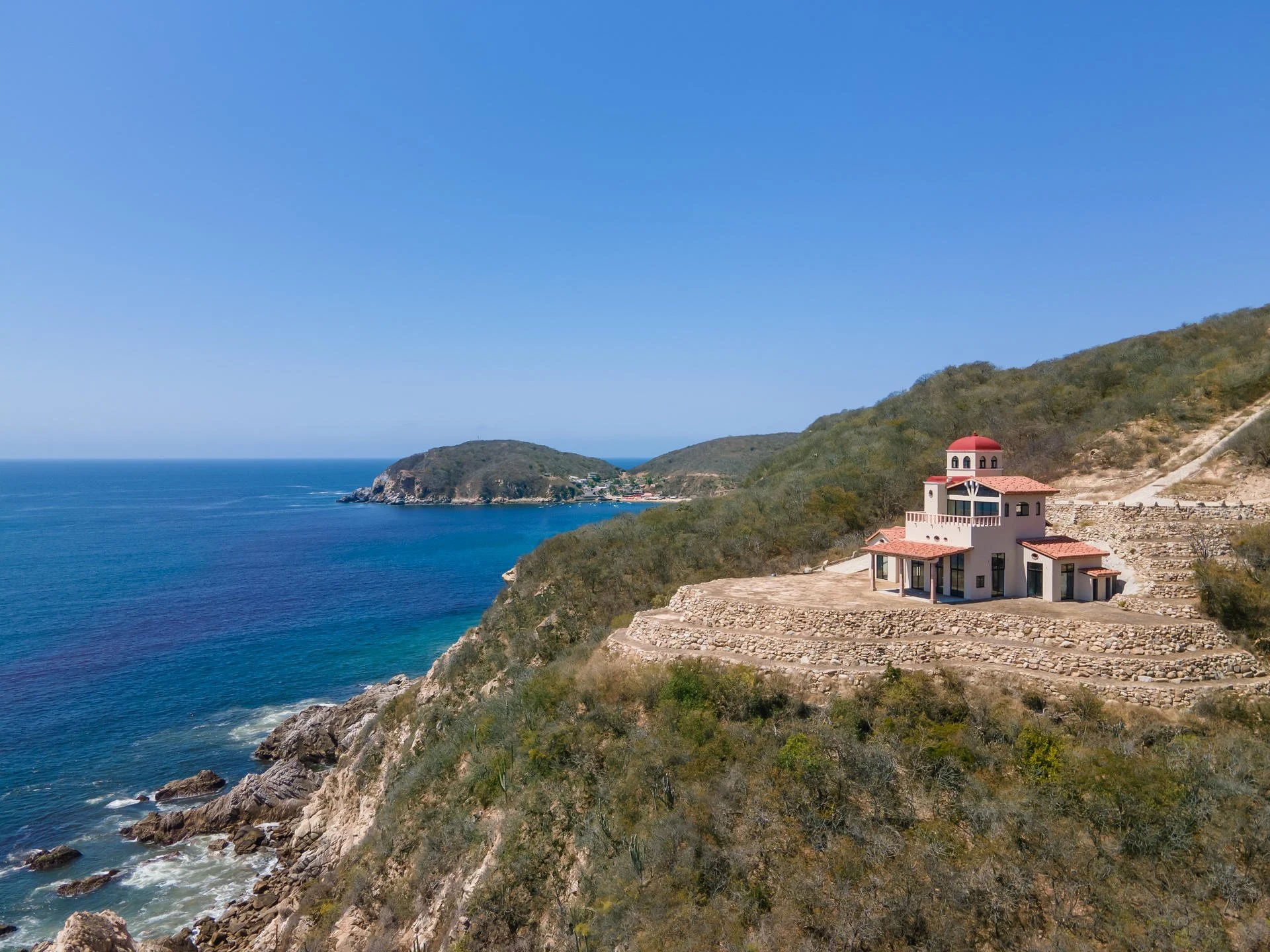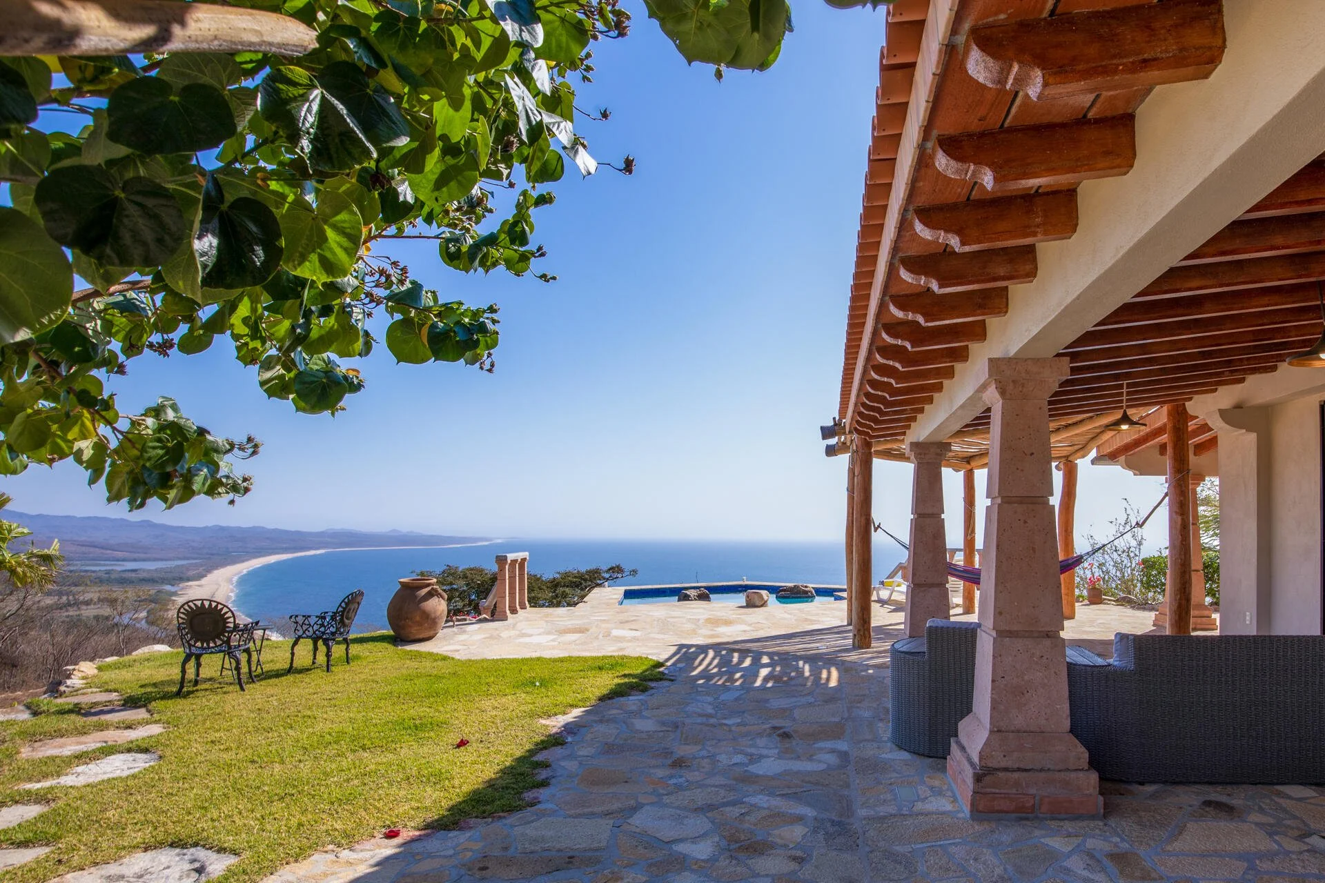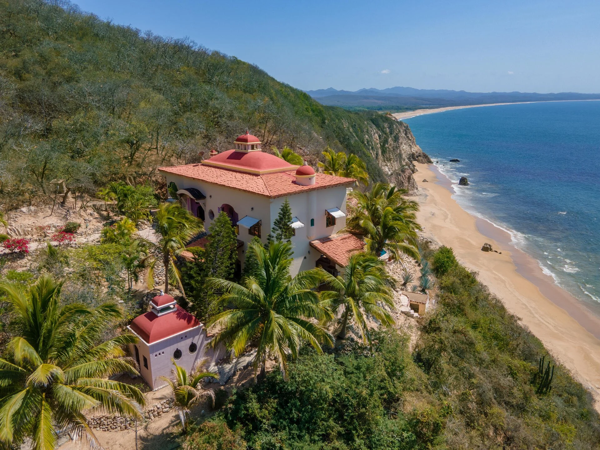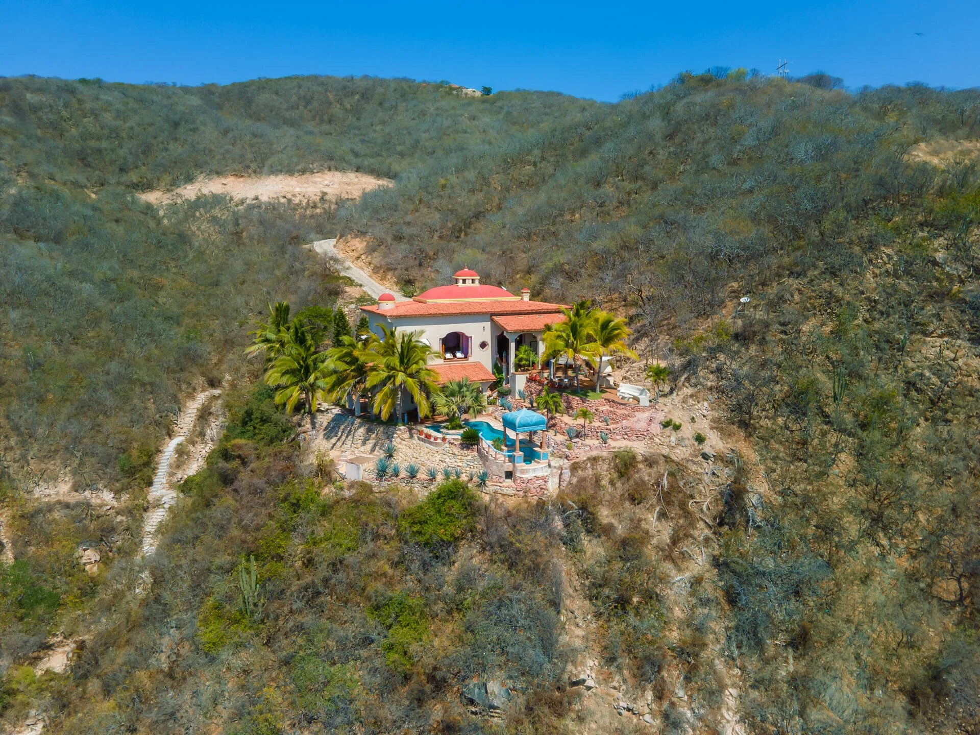 The perfect luxury home development location. Akunamatata features 1,400 feet of private beach due to the rock formations that butt up to the Pacific ocean. This amazing property includes one complete villa. The villa features 3 bedrooms, plus a giant open-air downstairs to sleep additional guests. There is an incomplete house that can be finished out to your liking. Further up on the property there are two separate apartments. The first is a one bedroom equipped with it's own kitchen, and a separate studio apartment. with 323,000 meters (~80 acres) you can build additional homes or common area features. This area is an up and coming area known as the playground for the super wealthy elite of Mexico. With plans for a new airport, you will be able to fly in and out on your private jet .