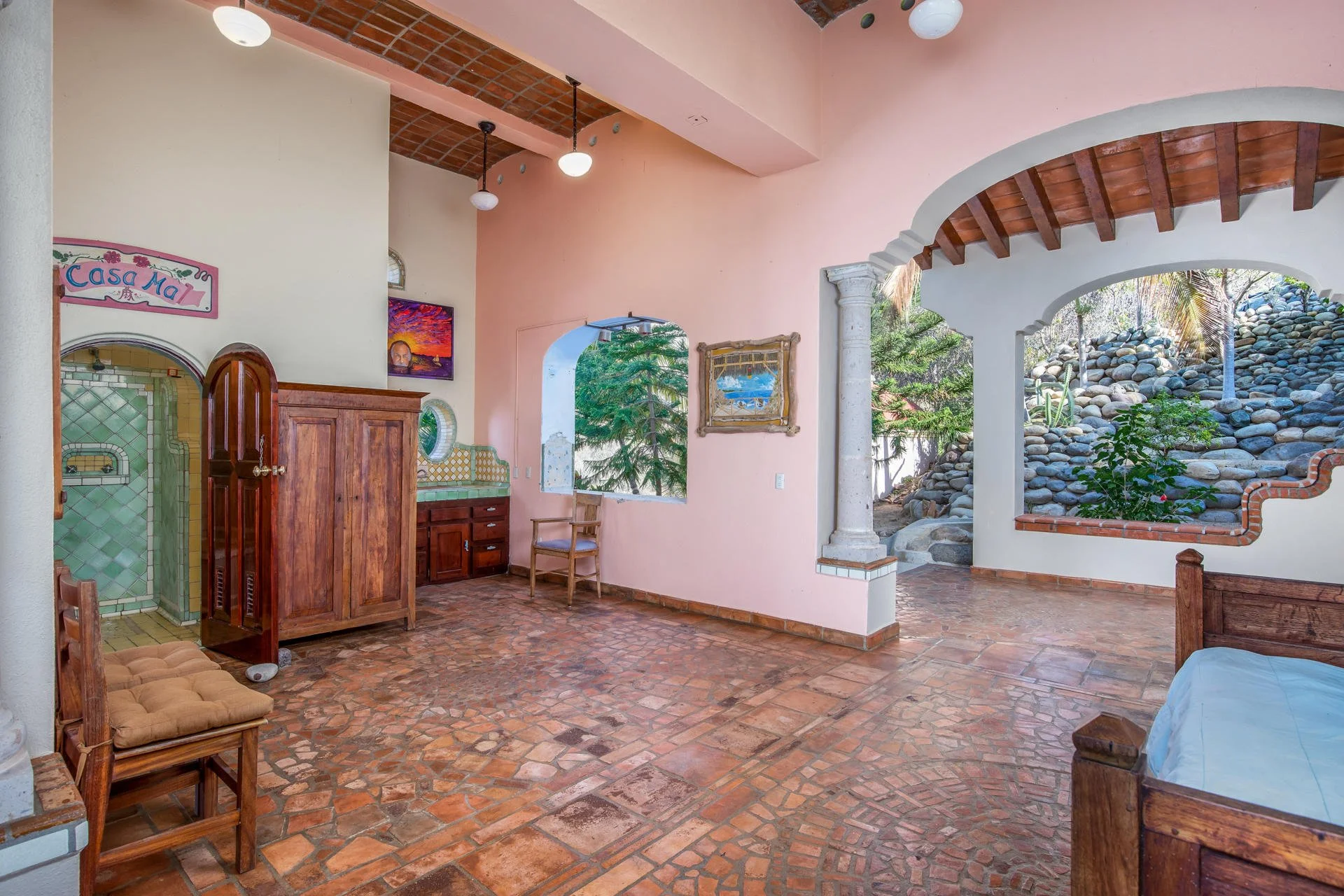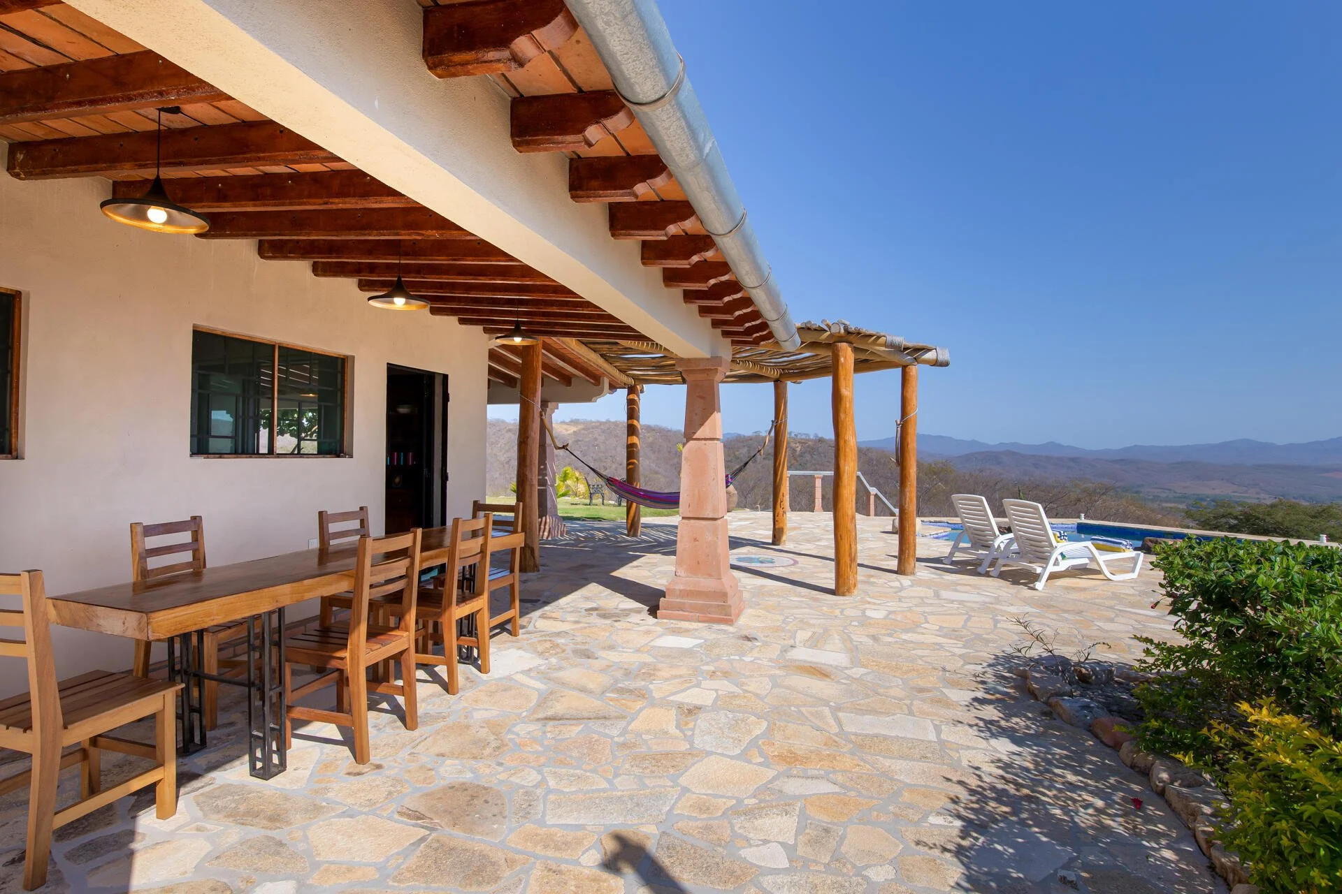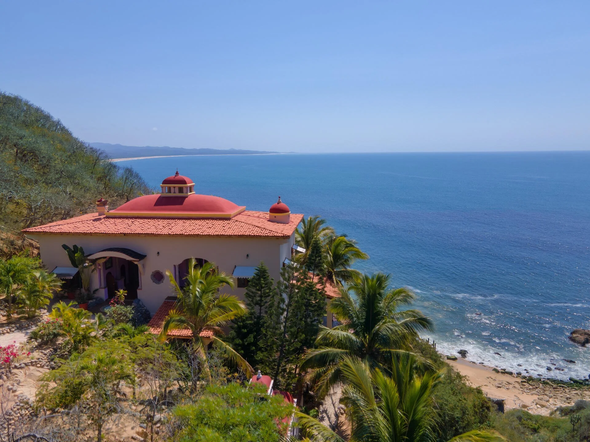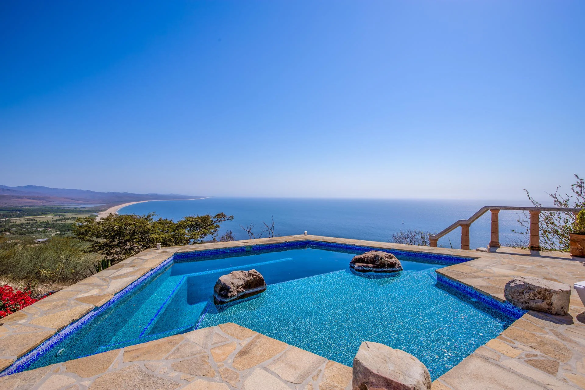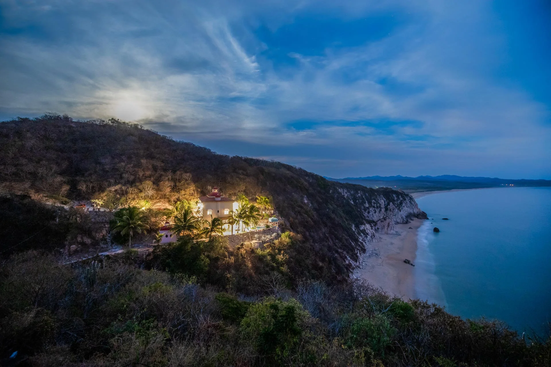The perfect luxury home development location. Akunamatata features 1,400 feet of private beach due to the rock formations that butt up to the Pacific ocean. This amazing property includes one complete villa. The villa features 3 bedrooms, plus a giant open-air downstairs to sleep additional guests. There is an incomplete house that can be finished out to your liking. Further up on the property there are two separate apartments. The first is a one bedroom equipped with it's own kitchen, and a separate studio apartment. with 323,000 meters (~80 acres) you can build additional homes or common area features. This area is an up and coming area known as the playground for the super wealthy elite of Mexico. With plans for a new airport, you will be able to fly in and out on your private jet .