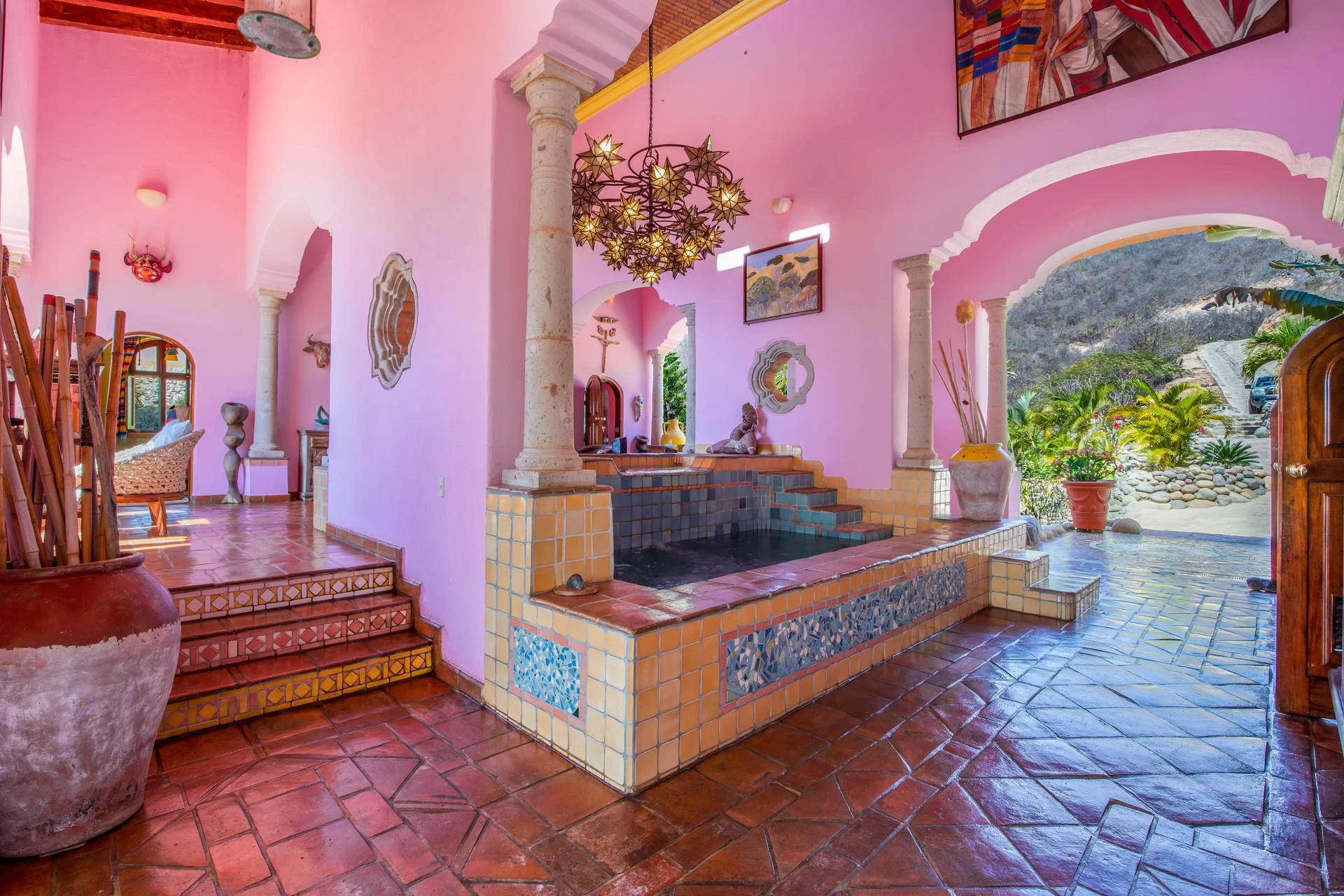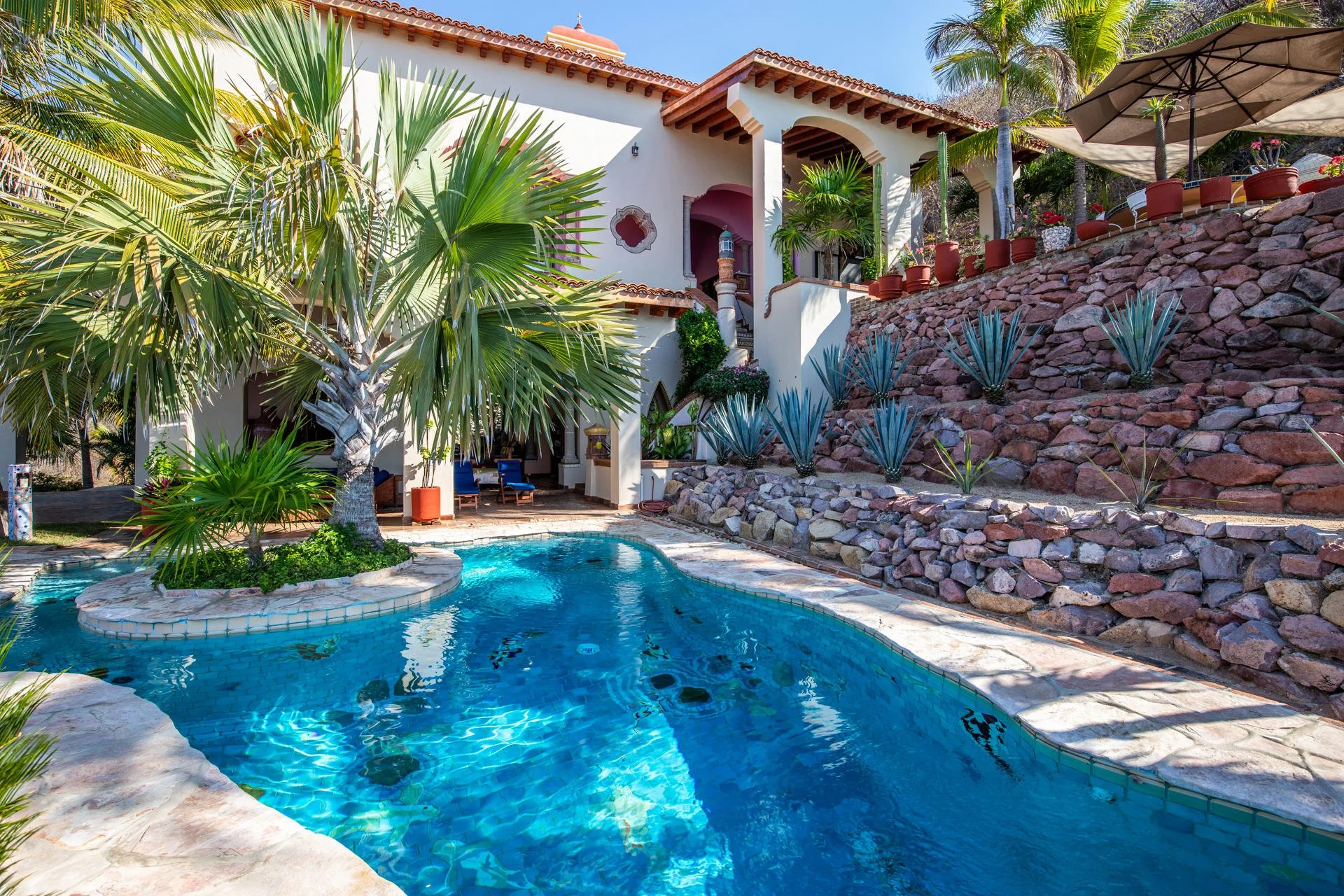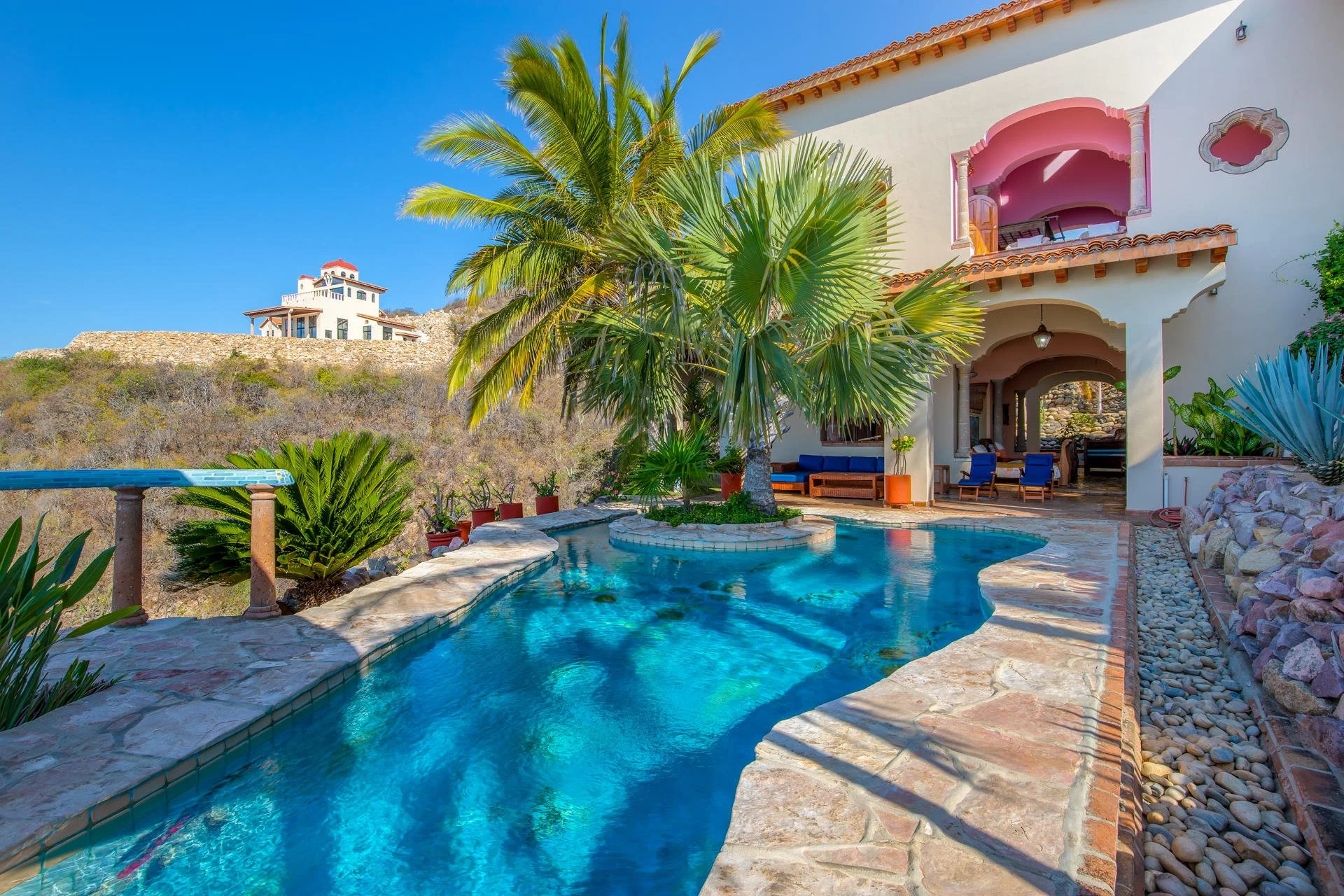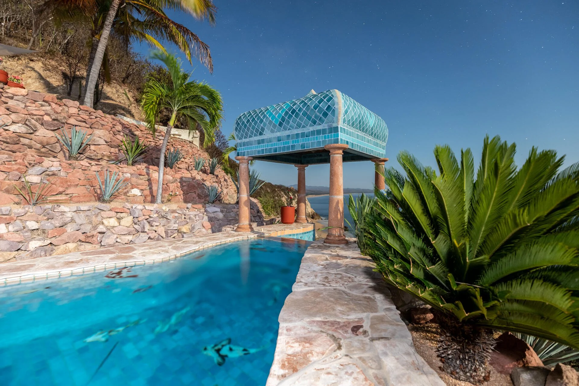 The perfect luxury home development location. Akunamatata features 1,400 feet of private beach due to the rock formations that butt up to the Pacific ocean. This amazing property includes one complete villa. The villa features 3 bedrooms, plus a giant open-air downstairs to sleep additional guests. There is an incomplete house that can be finished out to your liking. Further up on the property there are two separate apartments. The first is a one bedroom equipped with it's own kitchen, and a separate studio apartment. with 323,000 meters (~80 acres) you can build additional homes or common area features. This area is an up and coming area known as the playground for the super wealthy elite of Mexico. With plans for a new airport, you will be able to fly in and out on your private jet .