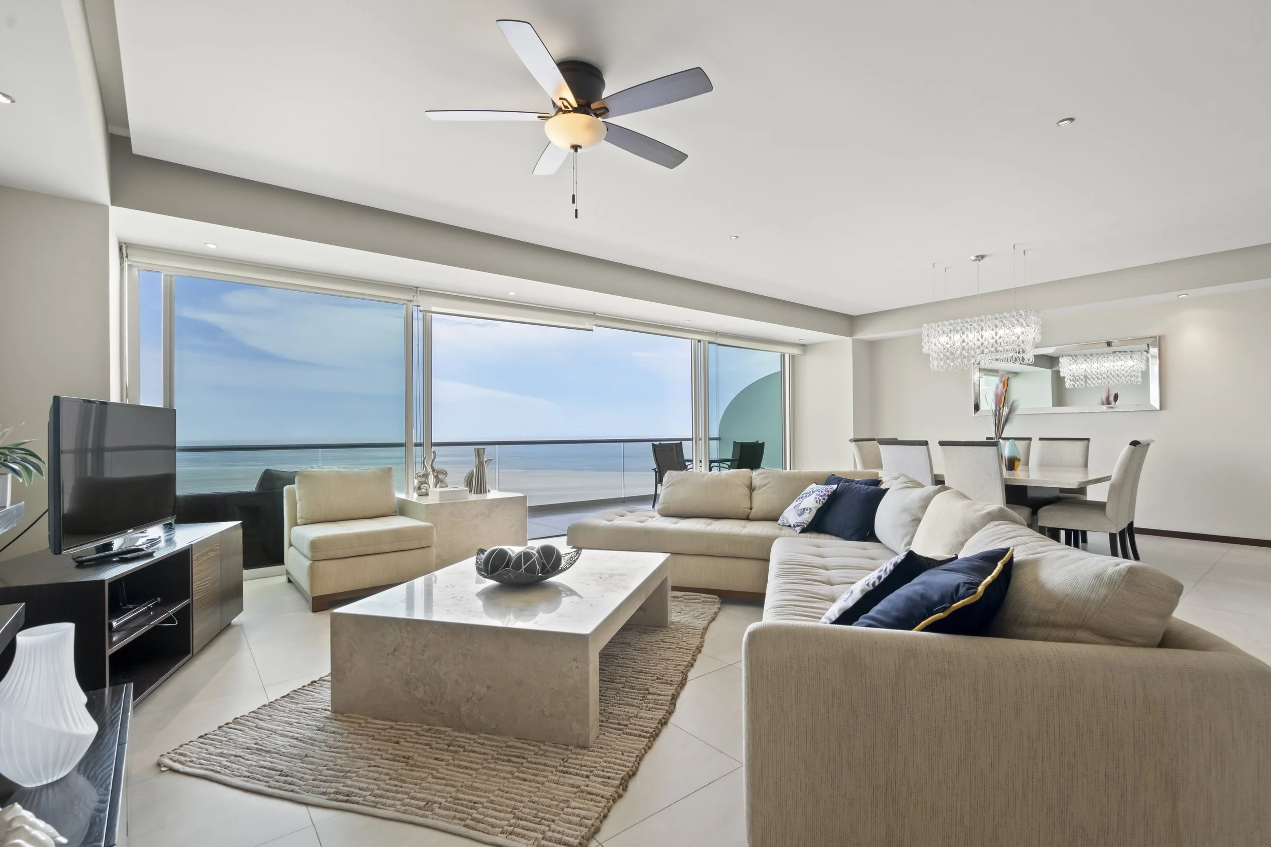 Welcome to this luxurious 3-bedroom, 3-bathroom condo in the prestigious Peninsula Vallarta, located in the heart of the Hotel Zone, Puerto Vallarta. Situated in Tower 2, Unit 9B, this fully furnished, turn-key unit offers 2,421 sqft of elegant living space, featuring modern interiors and high-end finishes throughout.