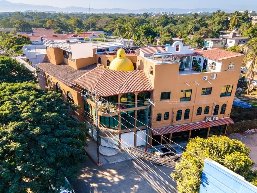INCREDIBLE INVESTMENT OPPORTUNITY MULTIPLE USE COMMERCIAL-RESIDENTIAL BUILDING- strategically located on the corner of a very high-traffic section and a busy area surrounded by restaurants, golf courses, supermarkets, pharmacies, banks, only 5 minutes from Nuevo Vallarta and 15 minutes away from Puerto Vallarta airport. The property consists of 4 levels, 17 units, laundry area, kitchen, gym, elevators, quaint garden space and two extra large terrace, rented commercial spaces and storage facilities. It's easily rentable or for your own business. Perfect for university boutique hotel, senior facilities and many more opportunities.